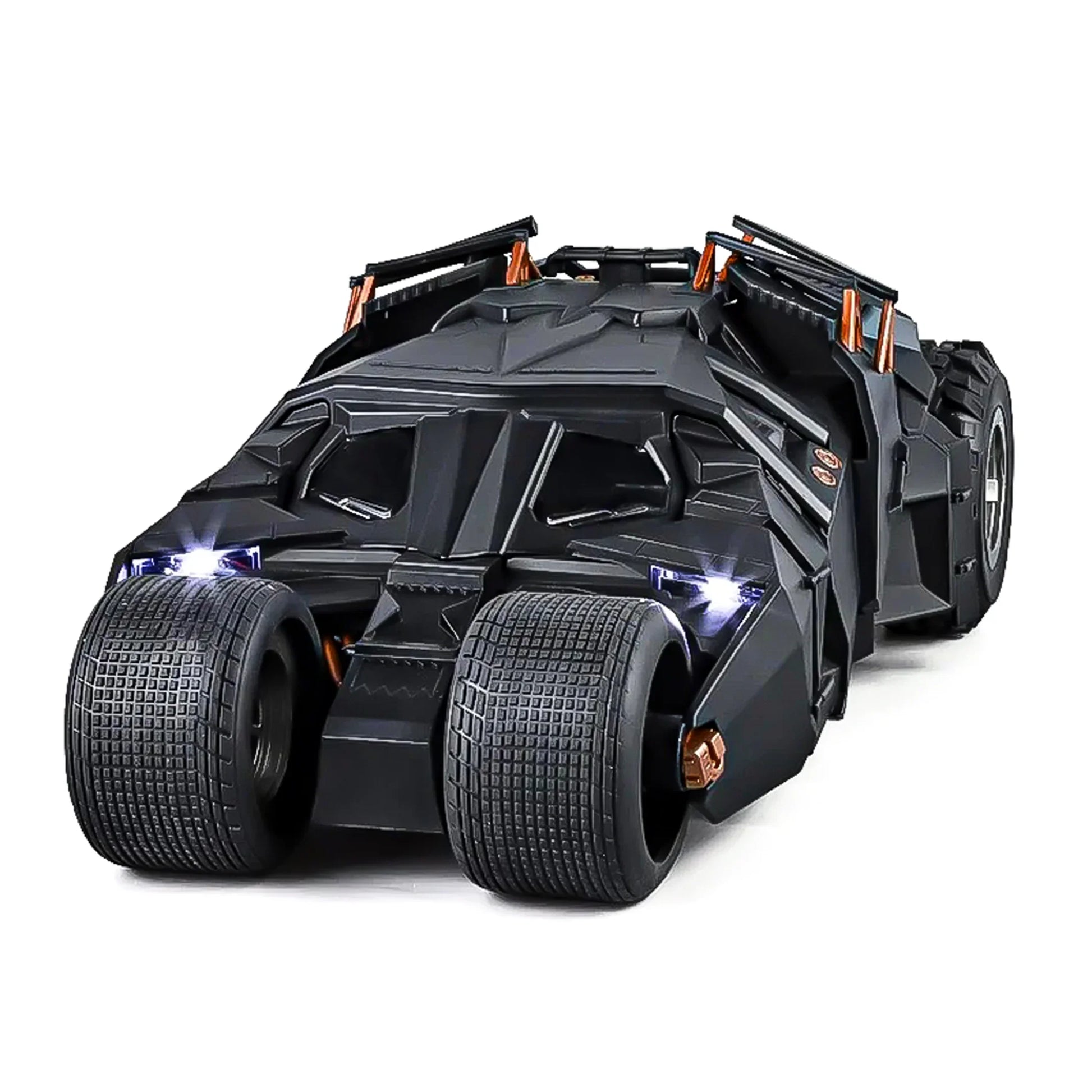 Tenha em mãos uma réplica memorável do Batmóvel Tumbler, como visto em O Cavaleiro das Trevas. Escala 1:24, acabamento robusto. Abre a capota para mostrar o interior, gira o volante, e ainda solta fumaça pelo escapamento, detalhes robustos de metal, partes que combinam borracha e plástico premium.