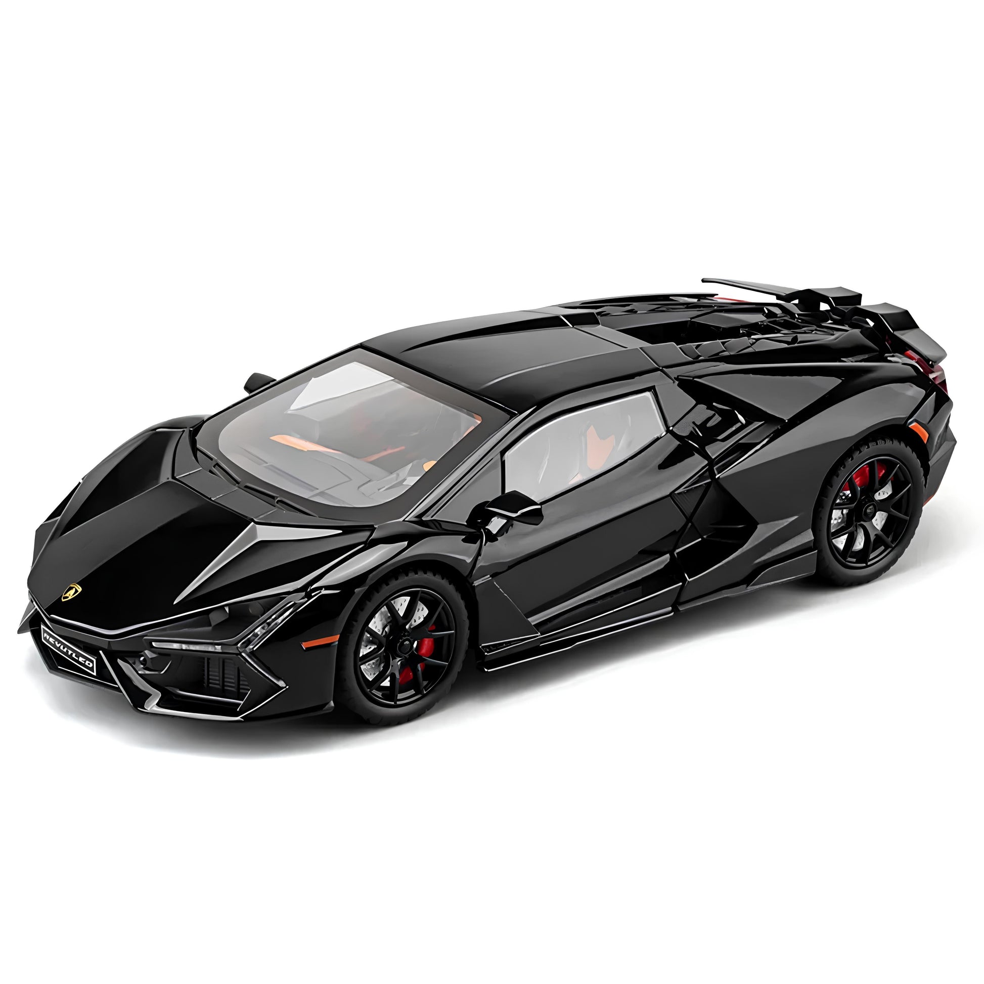 O Lamborghini Revuelto marca uma nova era na história dos superesportivos, combinando um motor V12 eletrificado com um design futurista e agressivo. Cada linha da carroceria foi esculpida para maximizar a aerodinâmica e transmitir pura emoção. Agora, essa obra-prima chega até você em uma miniatura premium na escala 1:24, capturando toda a exclusividade e imponência desse modelo inovador.